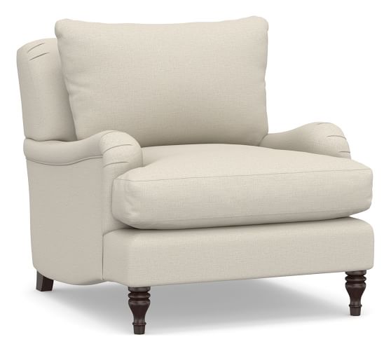 Open Box Carlisle Upholstered Armchair Performance Slub Tweed Pebble Pottery Barn